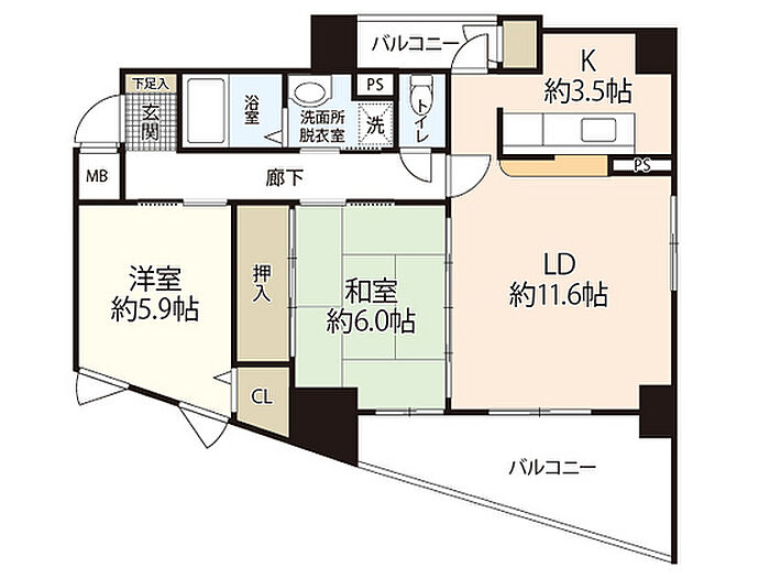 ダイアモンドビュー 2LDK/5階