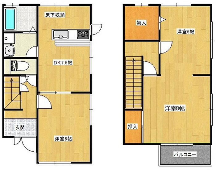 レジデンス川本D棟 2DK/1階