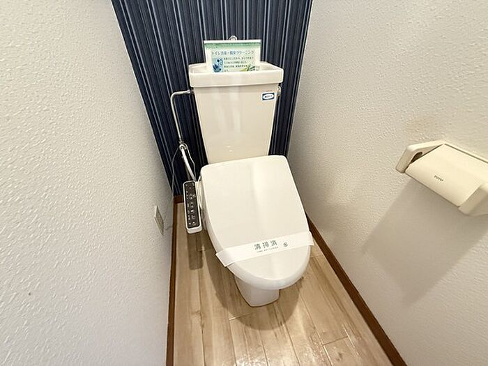 2口コンロ付のキッチン、温水洗浄便座付のトイレにはおしゃれな壁紙!部屋の随所にこだわりがみられます★スーパー、コンビニなど便利なお店が徒歩圏内に多く単身にはもってこいです!ご内覧も可能です♪♪
