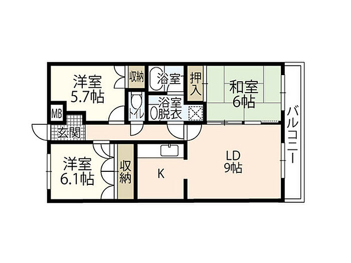 溝手ビル 3LDK/3階