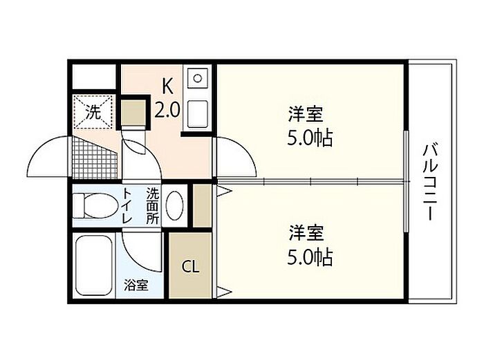 洋室2部屋に分かれた、使いやすい2Kの間取りです!広めのお部屋をお求めの学生さんや単身の方おすすめです!ネット使用料不要!!(※喫煙不可)お問い合わせは良和ハウスまで!!