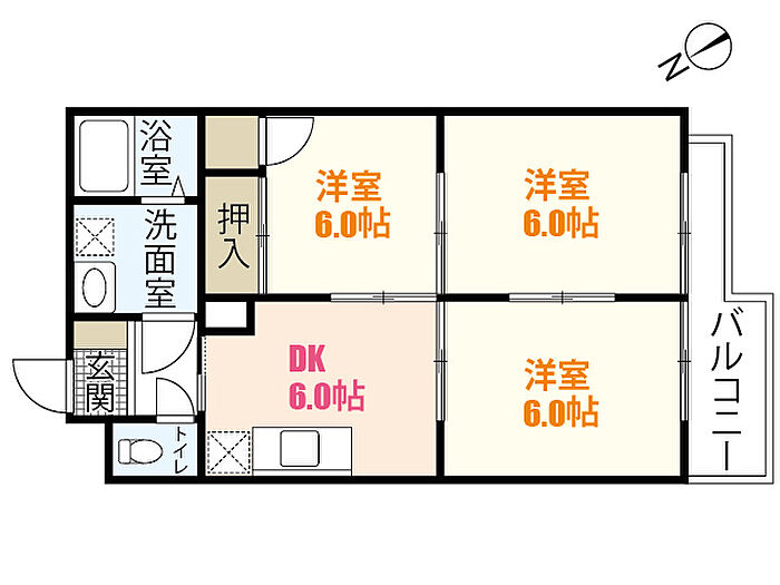 岩田マンション2号棟 3DK/1階