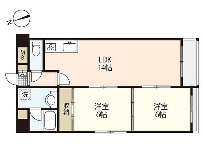 Kコーポ 2LDK/6階