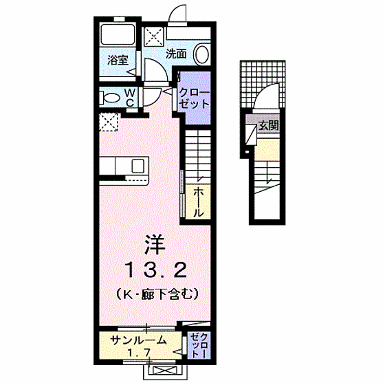 メゾン プラティークB ワンルーム/2階