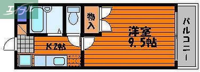 岡山市北区下中野 マンション 1K/2階