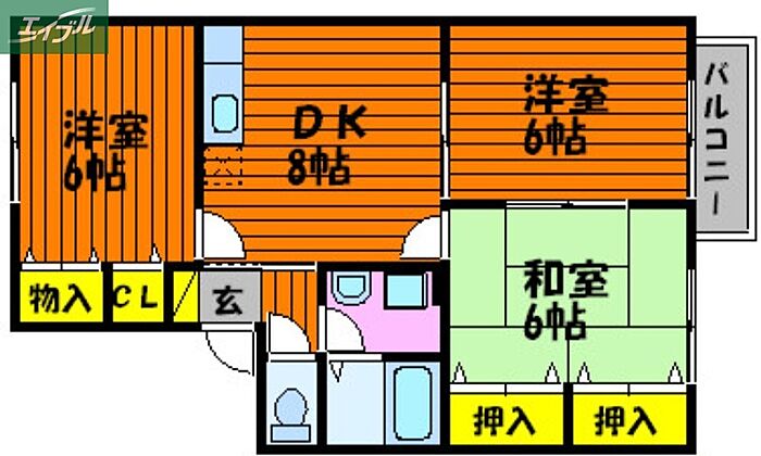 岡山市南区新保 アパート 3DK/2階
