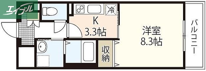 岡山市北区奥田本町 マンション 1K/2階