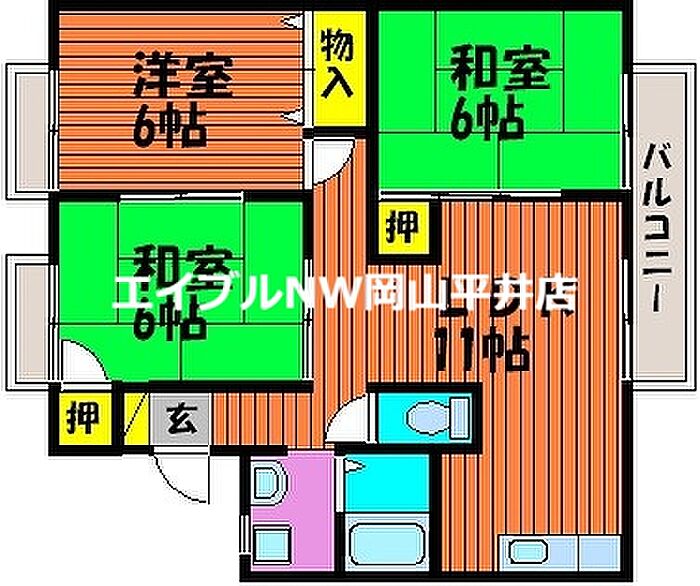 岡山市南区平福1丁目 アパート 3LDK/2階