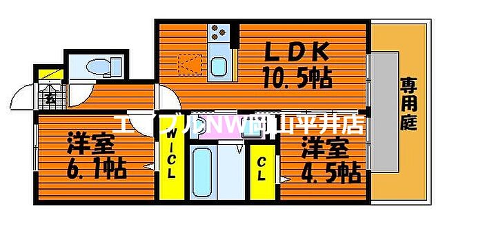 岡山市中区平井3丁目 アパート 2LDK/1階