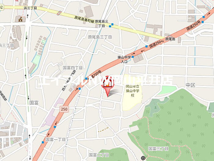 - JR山陽本線 「 岡山駅 」 バス18分 国富東下車 徒歩4分