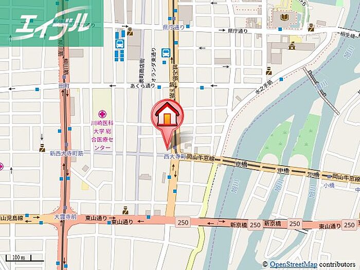 - JR山陽本線 「 岡山駅 」 バス7分 京橋下車 徒歩4分