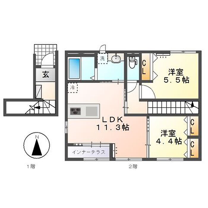 インターネット使用料無料(Wi-Fi対応)、インナーテラス、エアコン2台など充実の設備です。