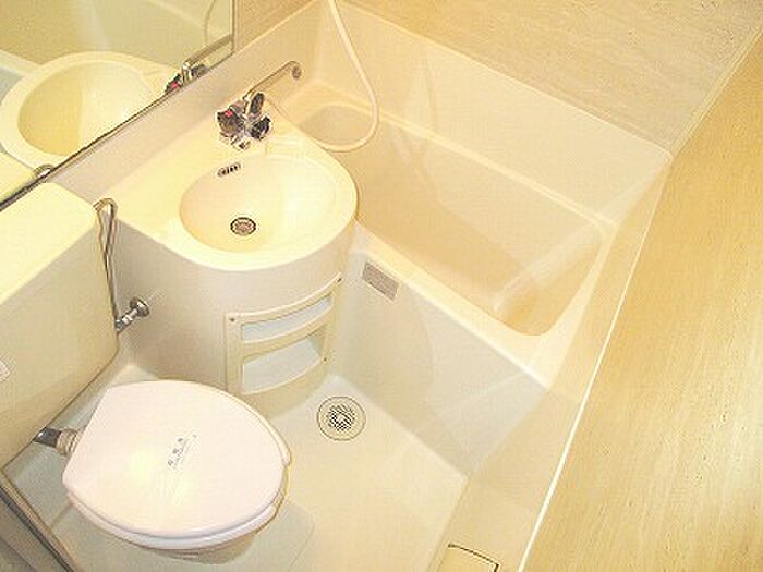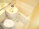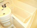 居室の扉を開けると直ぐに目に付くのが、ワンルームマンションには珍しいカウンターテーブル。キッチンと居室を区切るように設置している為、食事以外でも利用できるのが非常に便利です。居室も広めでベッドを窓側に置けば、3人掛けソファーを中央に設置してもまだ余裕があります。ユニットバスも大きめで、壁一面が硝子張りになっており、より広く感じます。