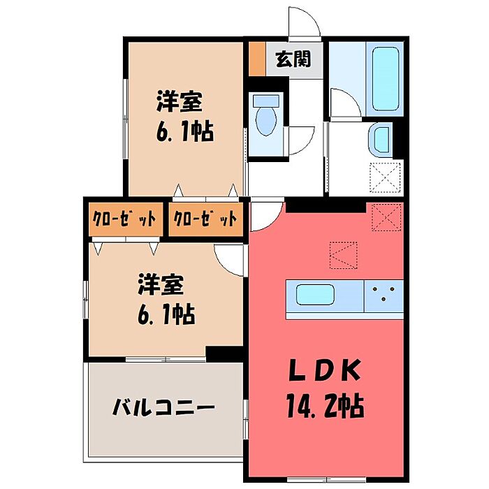 小山市東城南2丁目 アパート 2LDK/1階