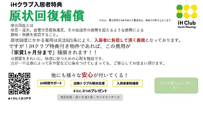 【当社管理物件】iHクラブ入居者特典あり!色んなオトクが付いてくる♪詳細お問合せ下さい!(条件有)