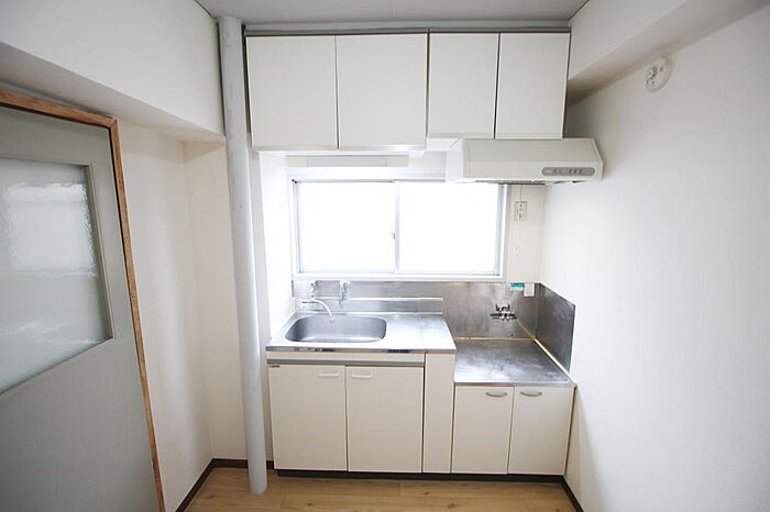 ◇キッチンは2口ガスコンロ設置可。吊戸棚収納もあり、収納豊富です。