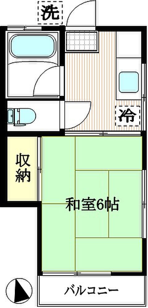 東府中駅徒歩2分 南向き陽当り良好の2階角部屋1K 天袋付押入収納 温水洗浄便座
