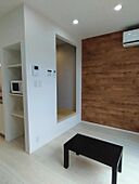 アクセントパネルが映えるスタイリッシュな空間に、こもれる書斎とウッドデッキを備えた個性派1R。デザイン性と機能性を両立し、オンもオフも自分らしく過ごせる住まいです。