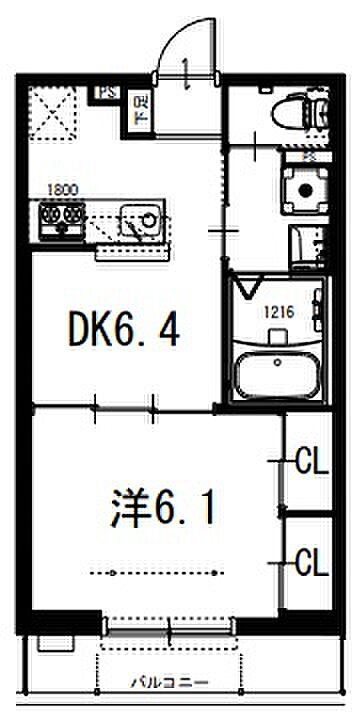 カウンタ-キッチン付1DK。流し台(幅1.8m)も3口ガスコンロ付。設備充実(ペアガラス、ウォシュレットトイレ、浴室追焚機能、TVインタ-ホン、ダウンライト、室内物干しユニット、ガスコック、シャッタ-雨戸)