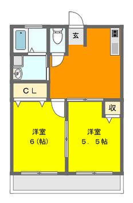 レオハイムB 201 2DK/2階