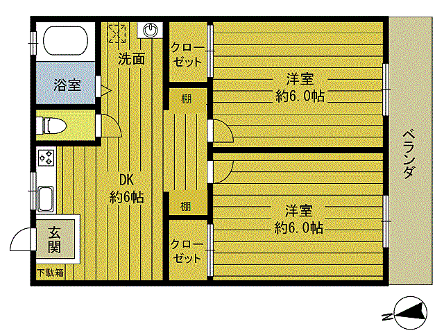 ベル キャッスル 203 2DK/2階