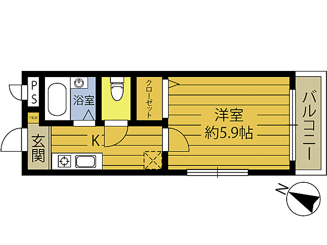 高砂ハイツIII 205 1K/2階