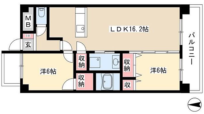 レージュ川秋 2LDK/4階