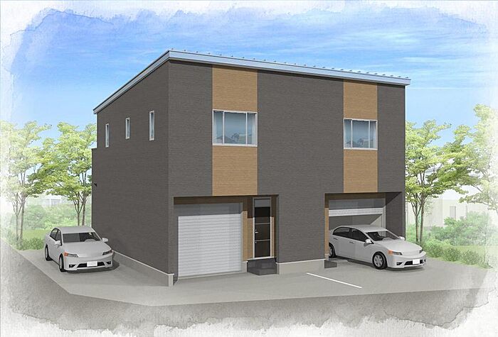 ガレージ内、建物横各1台駐車可