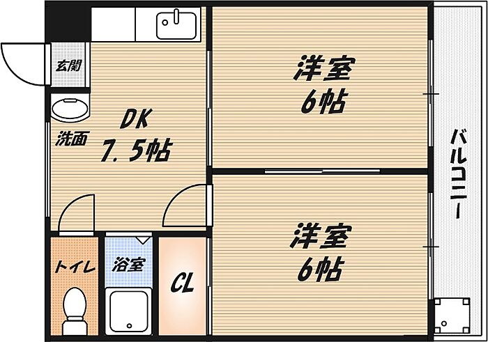 独立洗面台付きの2DK物件。2面採光で通風良好。2口ガスコンロ設置可能です。高槻市春日町の賃貸物件はハウスコム高槻店まで。詳細写真は“ハウスコム高槻店”で検索してHPからどうぞ。