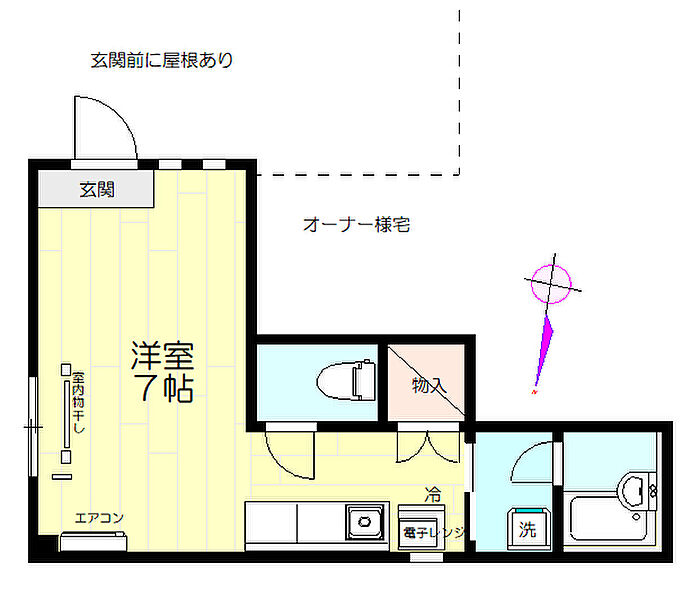 家電(洗濯機・冷蔵庫・電子レンジ・電気ポット)付き、バス・トイレ別。
