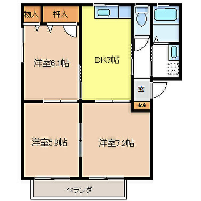 ラフィネ B 3DK/2階
