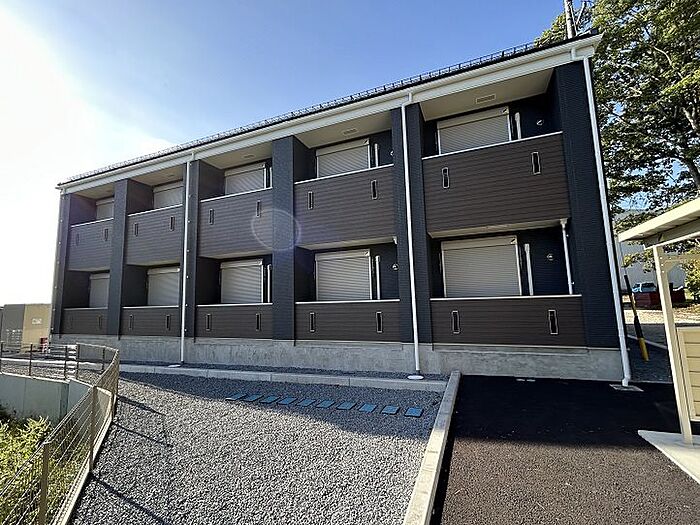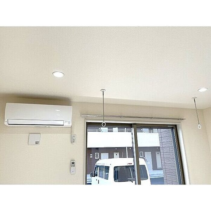 【新築】主な室内設備:ネット無料・3口ガスコンロ付システムキッチン・温水洗浄便座・TVドアホン・エアコン・浴室乾燥など。共用部は専用ゴミ置場・宅配ボックス・駐輪場あり。