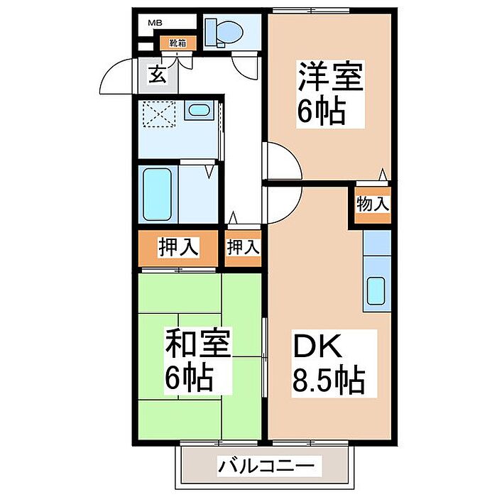 サンビレッジ花櫚 B 2DK/2階