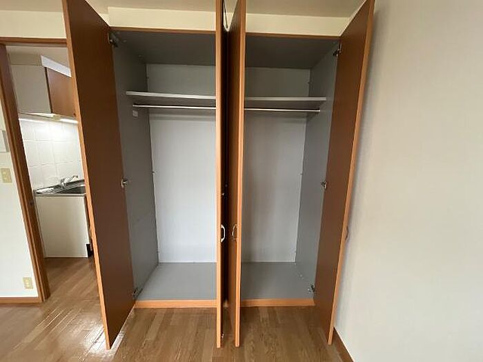 便利な鏡付クローゼットや照明器具付きの1K。2口コンロ付きのキッチン、室内洗濯機置き場もあります。
