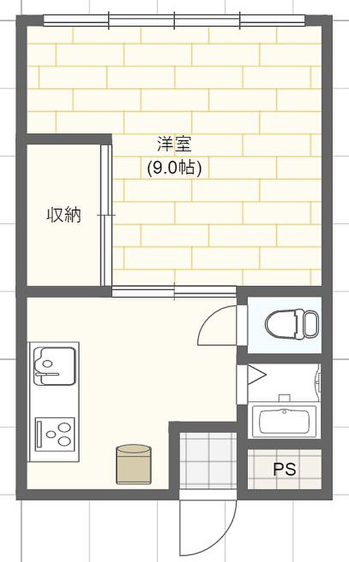 9帖ある洋室、とてもゆった〜りお住まい頂けます。また、外観とお家賃から想像もできない、広めのキッチンスペースはこの物件魅力の一つです。