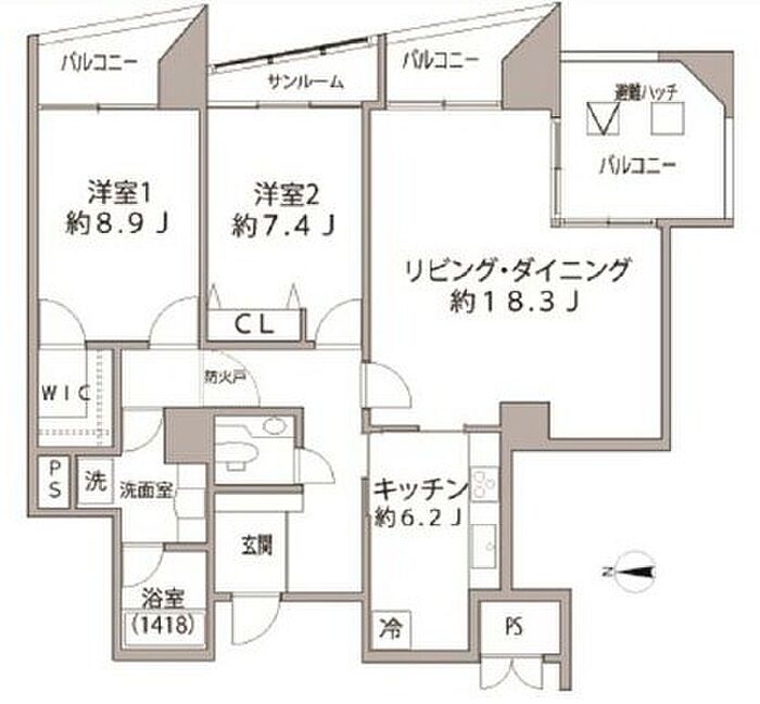 品川駅最寄りの高級賃貸マンション サンルーム付2LDK 100m2超えのゆとりある間取りです