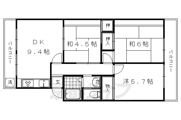 長岡京市西の京 マンション 3LDK/2階