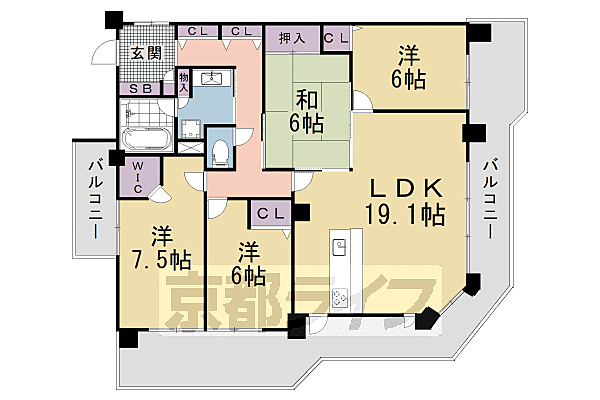 京都市山科区上花山桜谷 マンション 4LDK/3階
