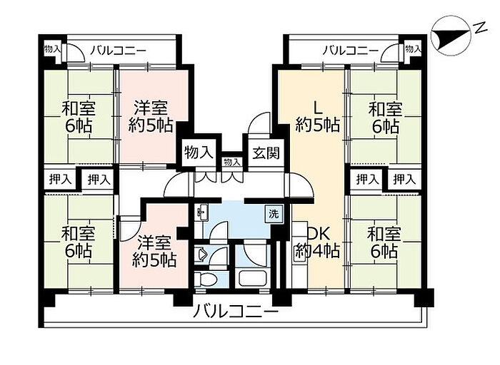 キャンペーン期間中の申込で5年間割引家賃が適用されます(6年目以降は割引前家賃)。詳細はUR窓口へ。面積には、バルコニー面積2分の1を含みます。