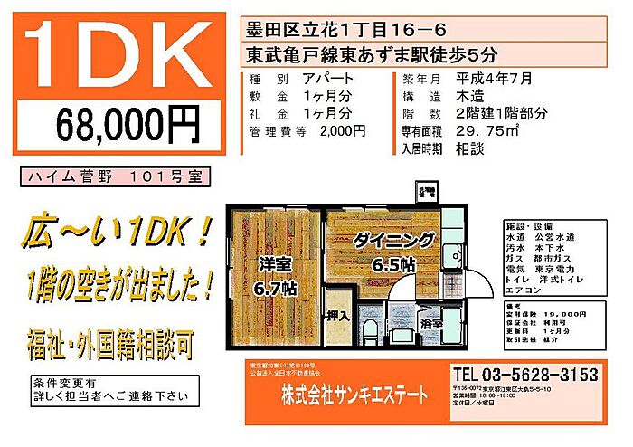 - 東武亀戸線 「 東あずま駅 」 徒歩5分