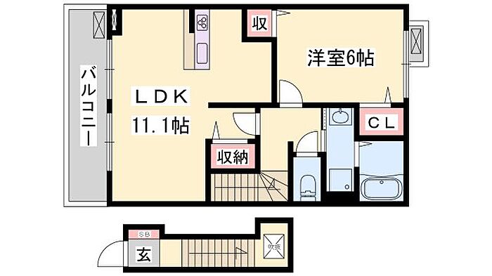 姫路市玉手 アパート 1LDK/2階