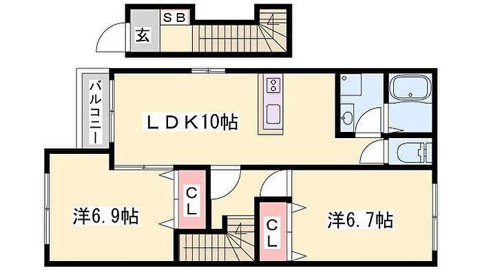 姫路市飾磨区妻鹿 アパート 2LDK/2階