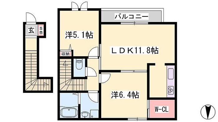 シャーメゾン西庄 201 2LDK/2階