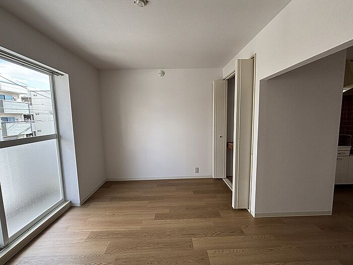 仕切りのない広々としたビッグワンルームです。2口ガスコンロ設置可能です。室内洗濯パンです。