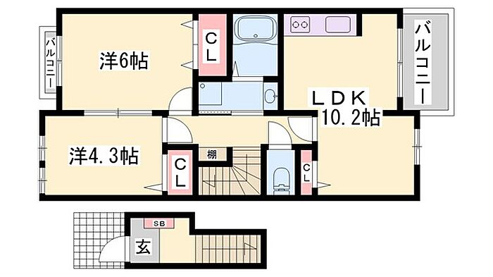アンソレイユII 2LDK/2階