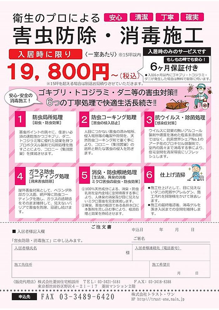 宅建業法(第46条)・報酬に関する国土交通省の告示(建設省告示第1552号他)に基づき仲介手数料1.1か月(税込)申し受けます。更新事務手数料:0.275ヶ月(税込)、※退去時の室内・エアコン清掃費用は借主負担となります※現況有姿での引き渡しとなります