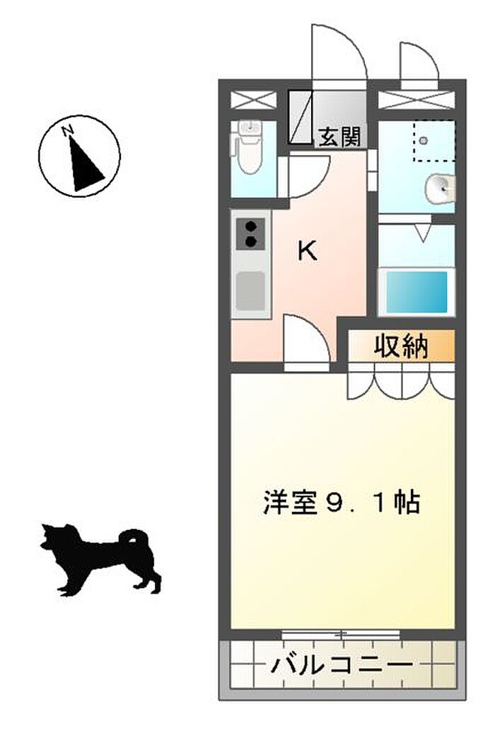 ペットと一緒に住める広々1Kです。