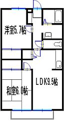 洋:5.7畳 和:6畳 LDK:9.5畳)
