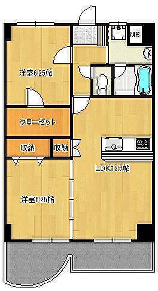 クローゼットがあり収納スペースあります。バストイレ別。カウンターキッチンで会話を楽しみながら料理が出来ます。ファミリー向けにもおすすめです。