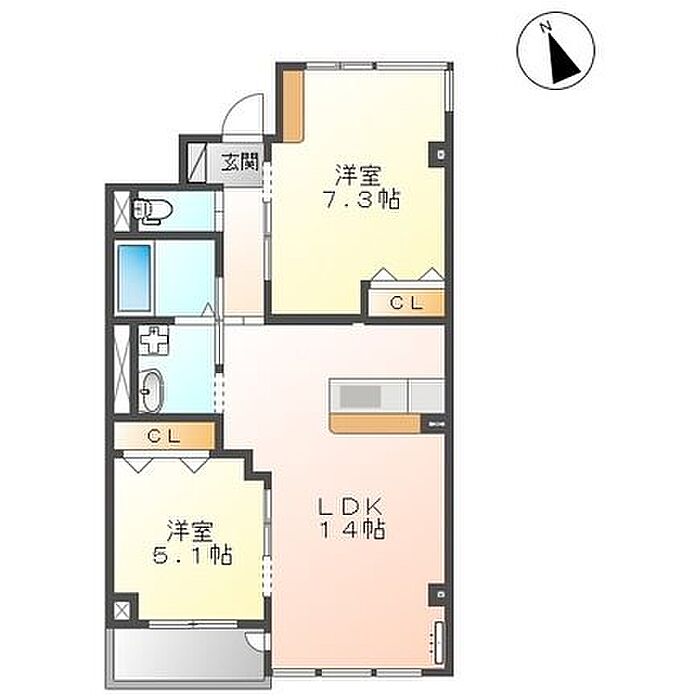 ユニヴァリィ レジデンス 201 2LDK/2階